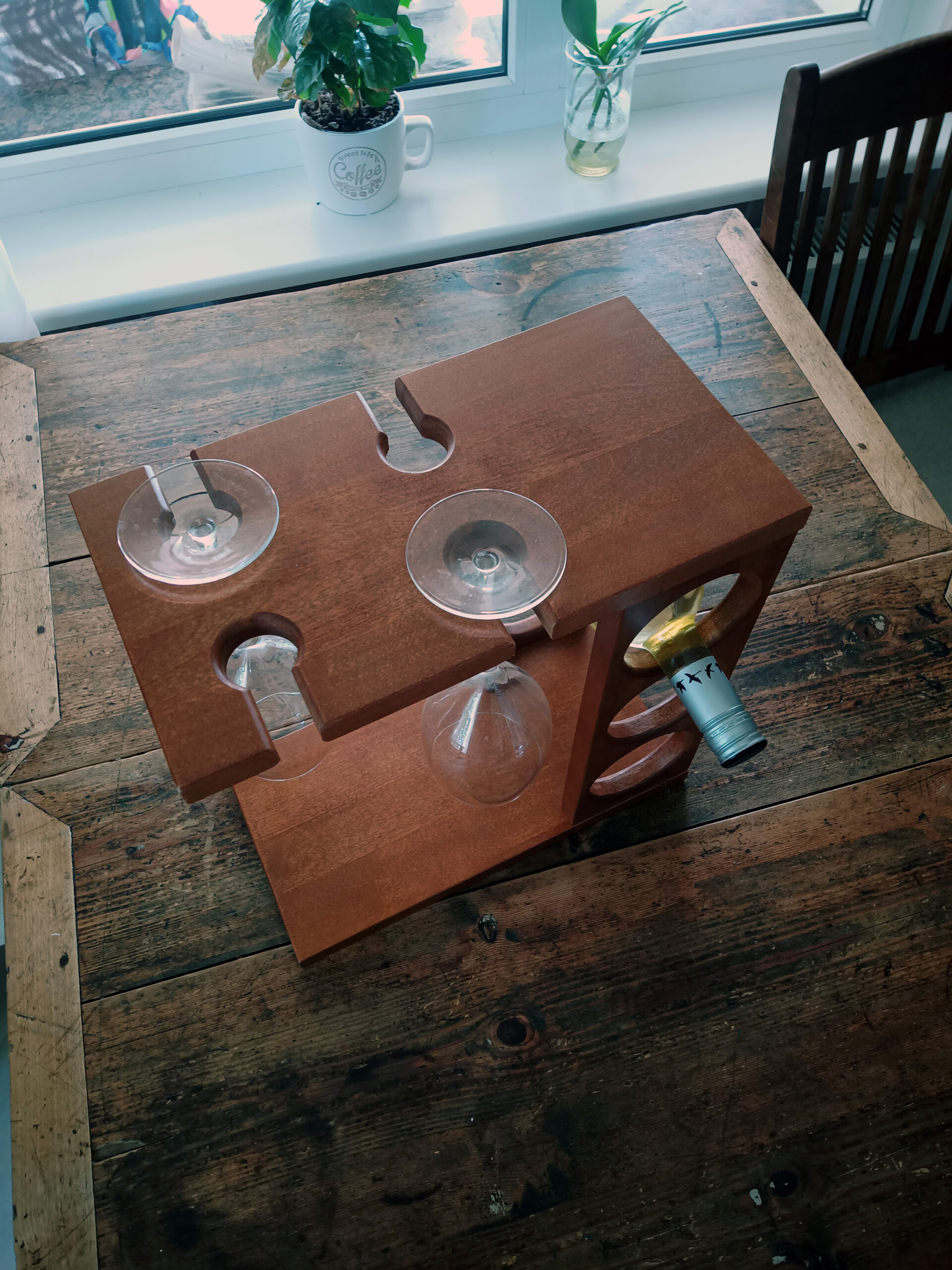 Veinipokaali ja pudeli alus on valmistatud kasepuidust ja on viimistletud lakiga